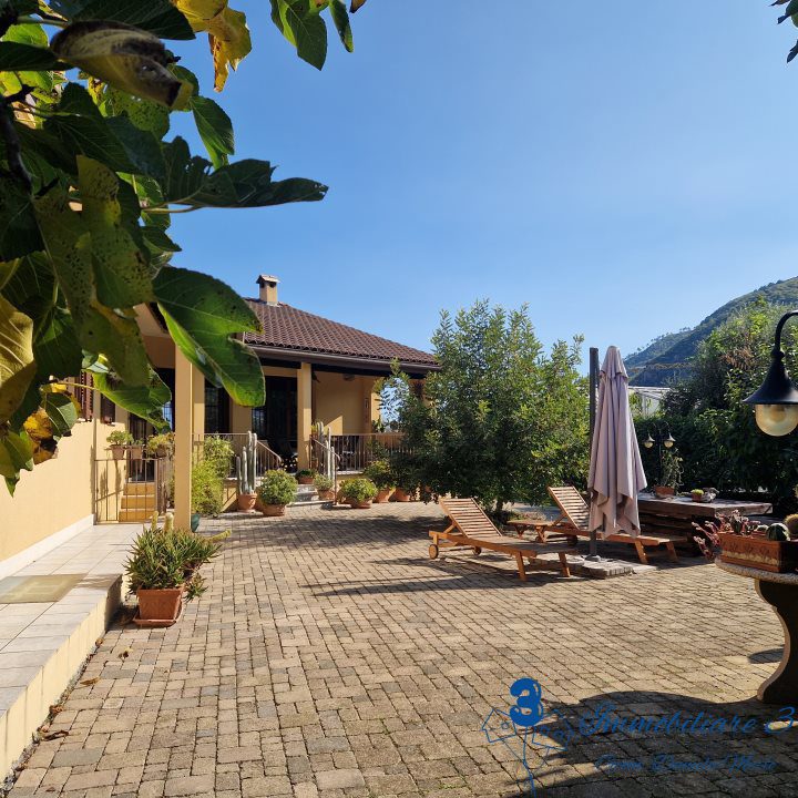ENTROTERRA DI ALBENGA - Sogni di vivere in una prestigiosa villa indipendente immersa nel verde. A Villanova d'Albenga, ti aspetta una splendida residenza in vendita. Questo immobile è perfetto per chi desidera spazi ampi e confortevoli: con una superficie di ben 141 mq. disposti su di un unico livello, è composta da: un ampio ingresso, un salone di mq. 37 con caminetto a legna ventilato per la diffusione di aria calda e soppalco ideale come zona relax con parquet in legno d'ulivo massello, due camere da letto entrambi matrimoniali, uno studio (che potrebbe tranquillamente diventare la 3° camera da letto), una cucina abitabile, due servizi igienici e un ripostiglio. Potrai rilassarti e godere della vista sulle colline circostanti dal grande porticato di oltre 20 mq. o dai due porticati dal lato dell'ingresso dell'immobile. Oltre al porticato antistante il salone, è presente una splendida area pavimentata, attrezzata come solarium e per godersi pranzi e cene all'aperto, con un fantastico forno a legna e barbecue. Costruita nel 1980, la villa si presenta in ottime condizioni, è stata costruita con materiali e rifiniture di pregio, è dotata di cappotto termico, tetto perfettamente coibentato e isolato con lastre da 15 cm. di spessore, infissi a taglio termico in legno di rovere con vetri tripli, persiane in ferro blindate e impianto di antifurto perimetrale. Il terreno di mq. 1895 circostante l'immobile, è in parte adibito ad uliveto, in parte a giardino e in parte è pavimentato con sanpietrini ed adibito a posti auto; l'intera area esterna è dotata di impianto di illuminazione. L'immobile è inoltre dotato di un magazzino posto al piano interrato di circa 70 mq. calpestabili. La proprietà è completamente recintata e l'accesso è garantito tramite un cancello carrabile motorizzato. Il prezzo di € 545.000,00 renderà il tuo sogno di vivere in una prestigiosa villa indipendente una piacevole realtà. Aspettiamo la tua chiamata per fissare un appuntamento !!!